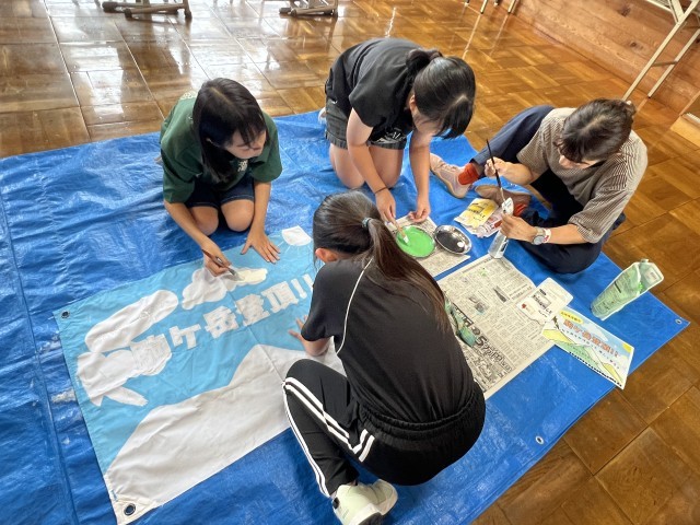 今日の中休み、5年生の空き教室では、「旗」の制作をしていました。