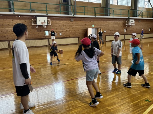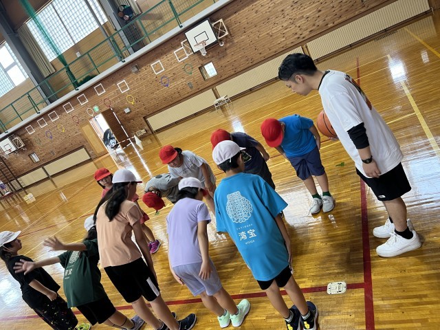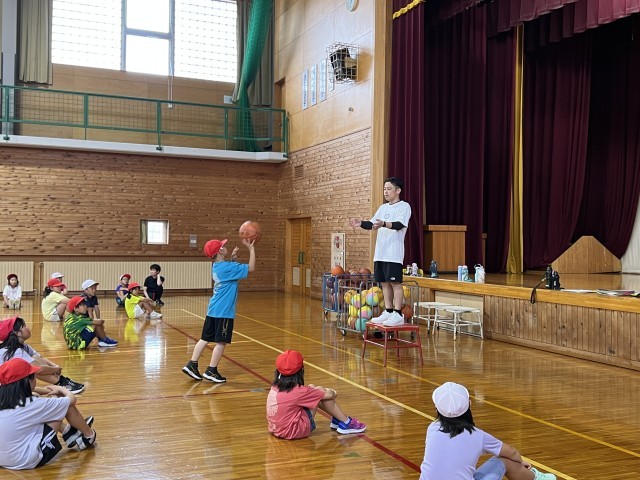 一緒に準備運動をしたり、ボールを使ったスキルアップの運動をしたりしました。