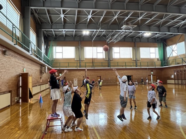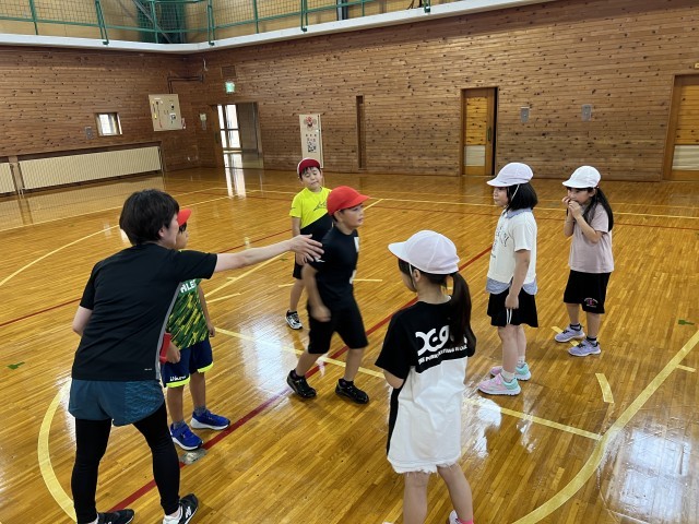 今日の体育館では、授業における安全面の確保と、子どもたちの体育の学習の充実を図るために、3・4年生が合同で体育を行いました。