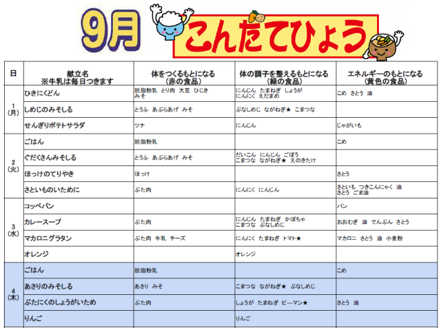 <9/4(木)> 6年生が考案したメニューが給食に!(全校)