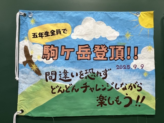 さあ、明日はいよいよ駒ヶ岳登山!全員でこの旗を持ち歩きながら、5年生全員で登頂できるように頑張ってきます!