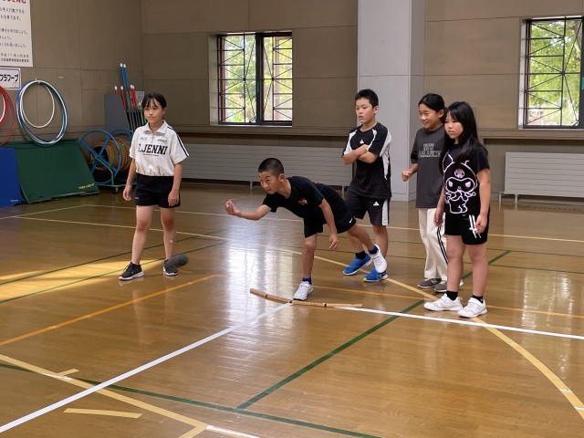 今日のプログラムは「モルック」と「パークゴルフ」。ともに初めて活動する子どもがほとんどでした。でも、すぐにそのコツを覚え、ともにいいプレーや、面白いプレーがでると大きな歓声や笑顔が広がっていました。