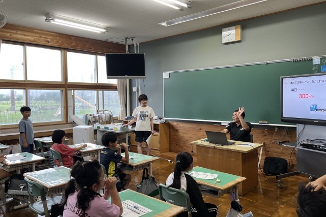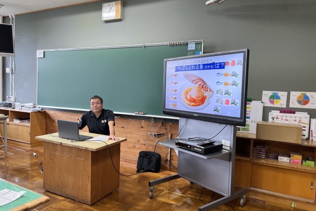 この日の3年生の総合的な学習の時間では、長万部漁業協同組合の方をお迎えして、長万部町の漁業の様子をはじめ、特産品のホタテについてご講話いただきました。