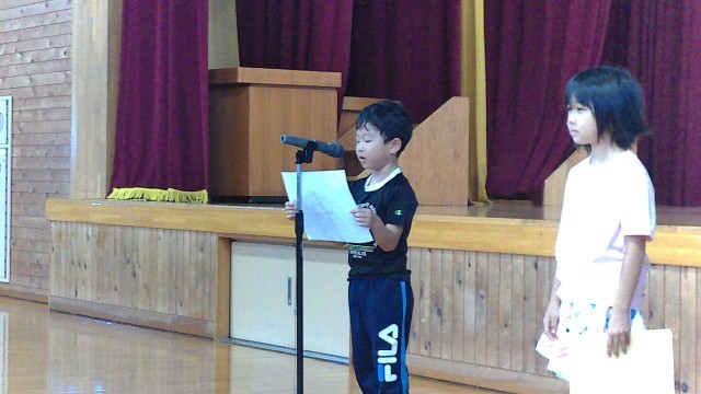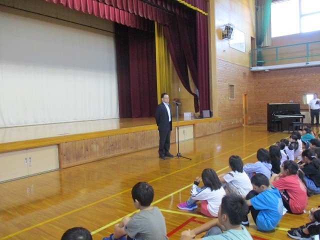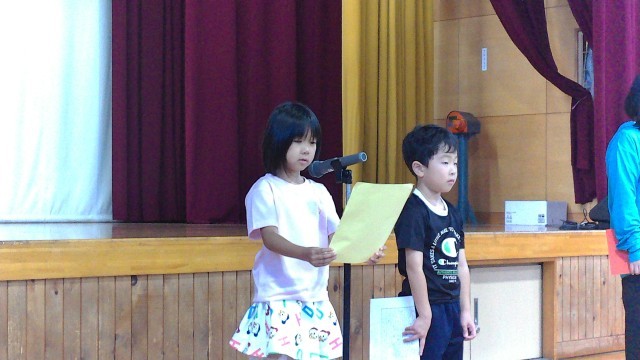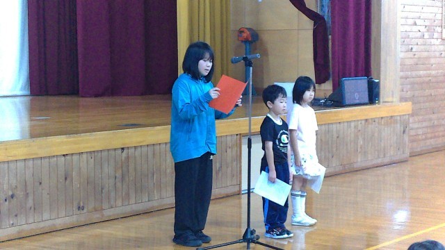 校長先生から全校児童の皆さんへのお話とともに、前期に頑張ったことや後期に頑張りたいことを1・3・5年生の代表児童が発表しました。