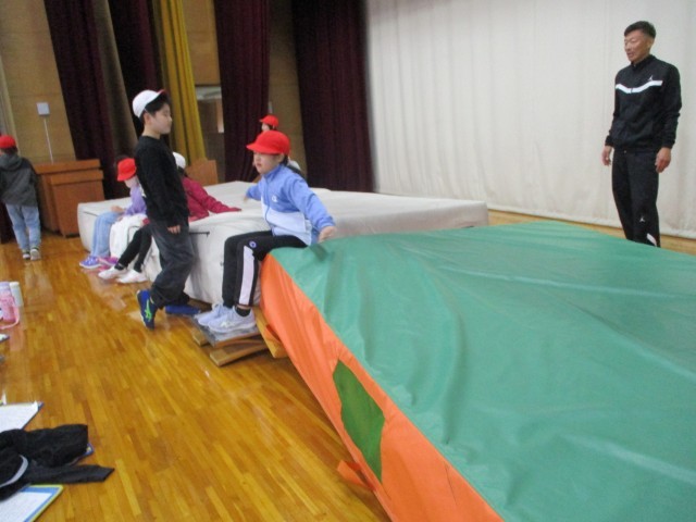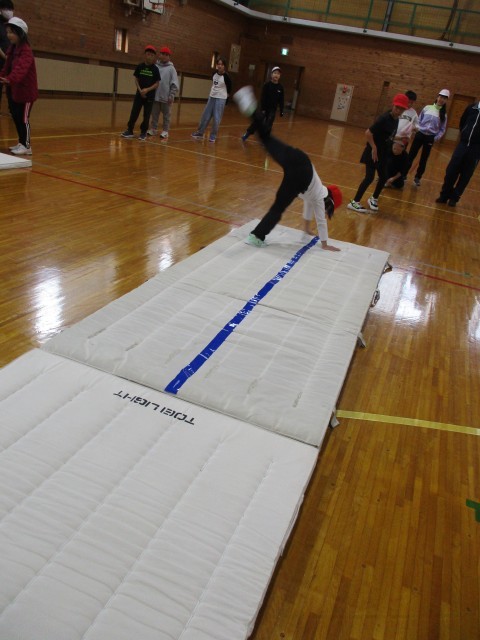 マットを組み合わせて長いマットを設置して運動量を確保したり、段階的に練習機会を増やすことで、上達する子どもたちがたくさんいました。
