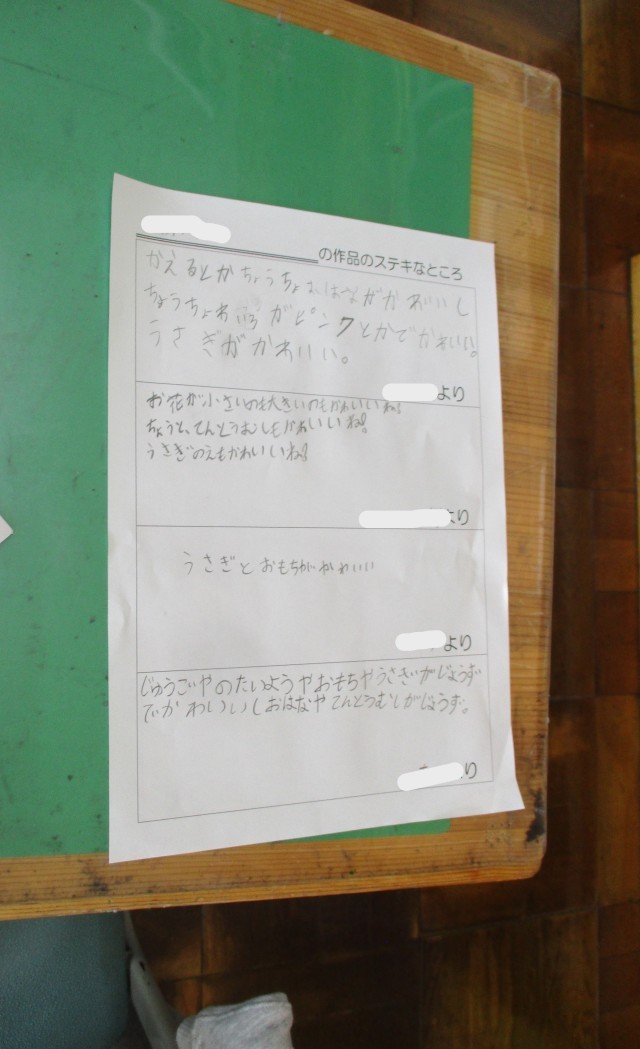 <10/27(月)> 作品のステキなところ、いっぱいあったよ(3年・図画工作科)