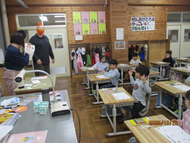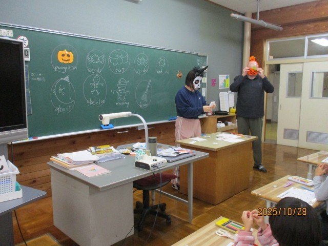 この日の1年生は、ALTの先生と一緒に「ハッピーハロウィン」で楽しみました。