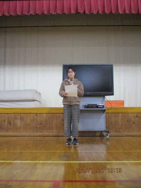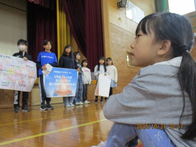 <10/31(金)> 学習発表会に向けた各学級のスローガンを発表!(全校集会)