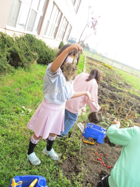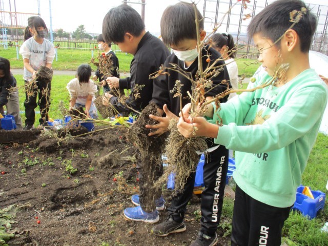 <11/6(木)> 大切に育ててきたミニトマトとのお別れ…(2年・生活科)