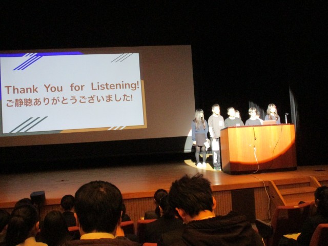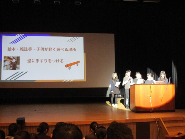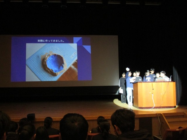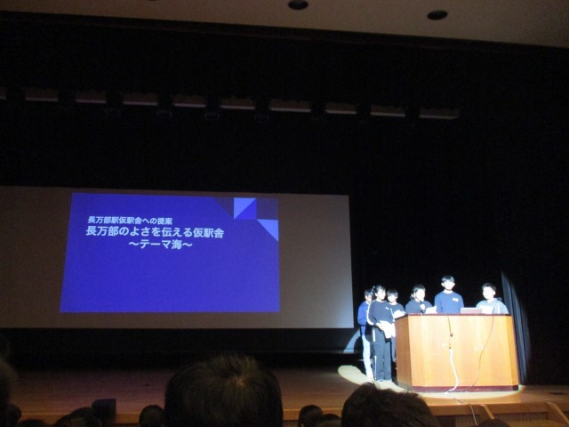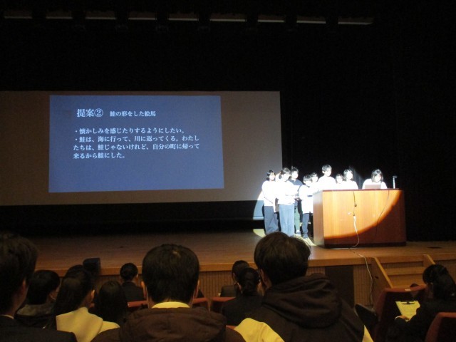 総合的な学習の時間で取り組んできた北海道新幹線に係る長万部新駅について、「長万部町の未来につながる仮駅舎~私たちの思いをつめこんで~」と題し、中学校・高校、そして地域の方々に向けて発表しました。