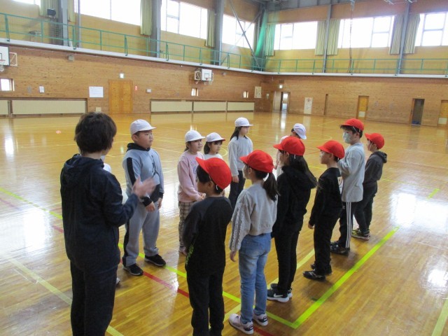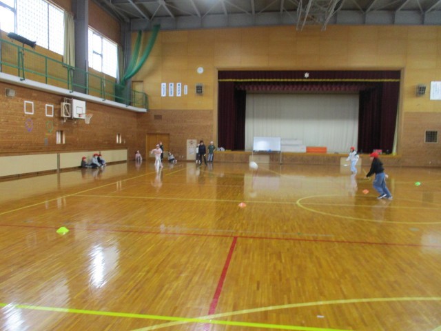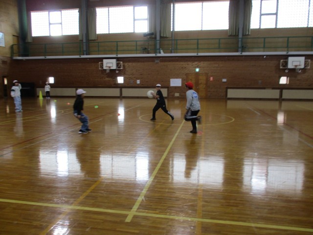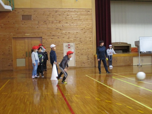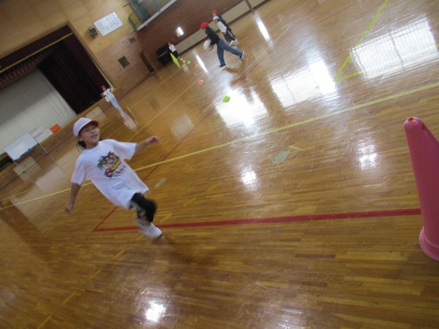 この日の3年生では、体育館でキックベースをおこなっていました。