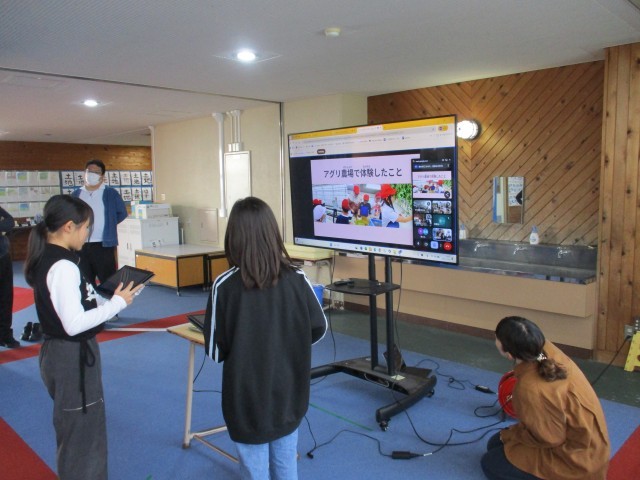 各校の学習の様子、町の特産物等を知ることができたことももちろんよかったですが、このように学校間で「つながり」をもつことは、子供同士を「つなげ」、その子供たちの未来を「つなぐ」ものであると感じました。