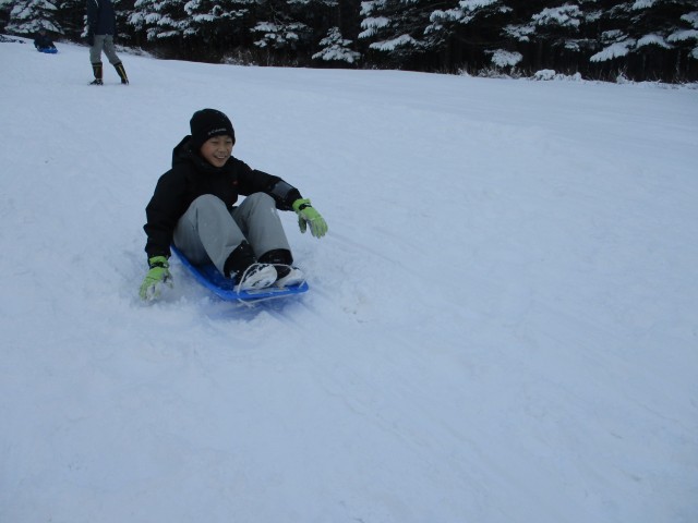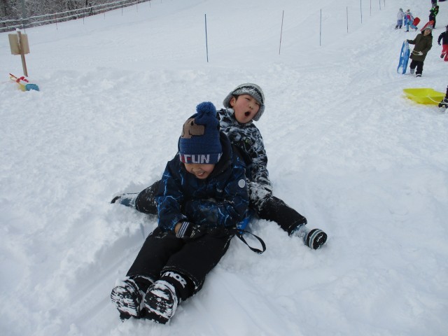 雪遊びのグループもそりに乗って単に「楽しむ」だけでなく、「雪上」という特殊な環境での身体の使い方を学んだり、バランス感覚を楽しんだりしていました。