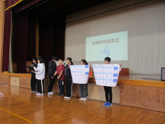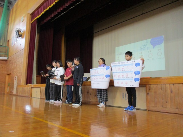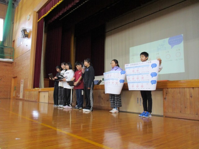 また、保健体育委員会から全校児童におこなったアンケート結果を発表しました。