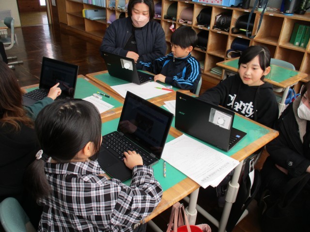 について、声の大きさや、話すスピード、調べた内容、スライドの見やすさ、ここがよかったよ、こうしたらもっとよくなるよという中間発表という位置づけで、子供同士はもちろん、ご参観いただいた保護者の皆様からもアドバイスをいただきました。