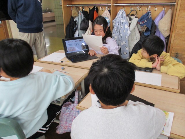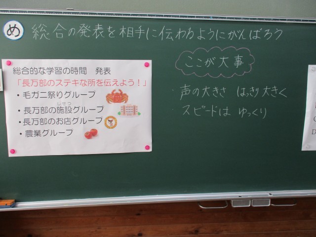 3年生では、「総合の発表を相手に伝わるようにがんばろう」というめあてのもと、