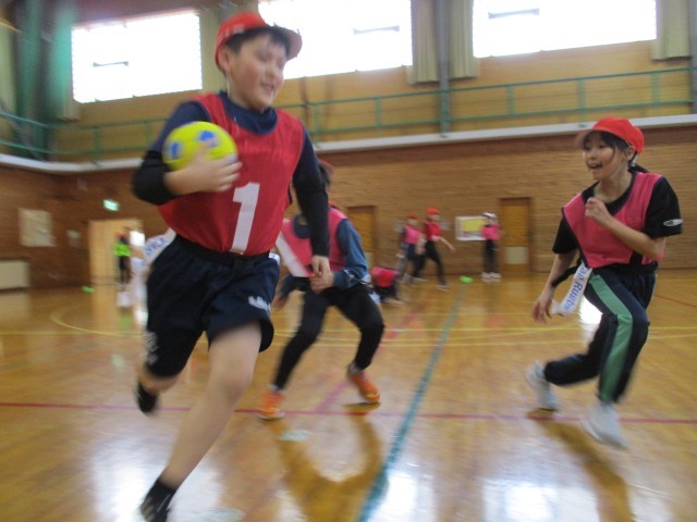 この日の5年生の体育科では「タグラグビー」を行っていました。