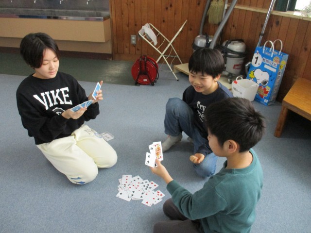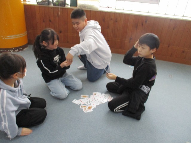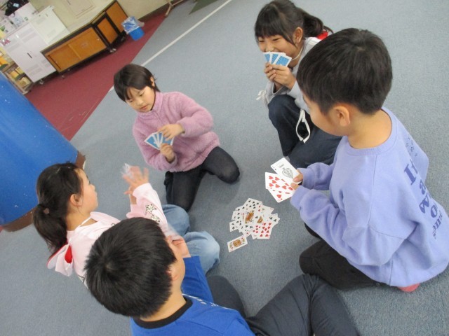 トランプゲームでは、優しくサポートする4年生の姿があるなど、微笑ましい場面が多く見られました。