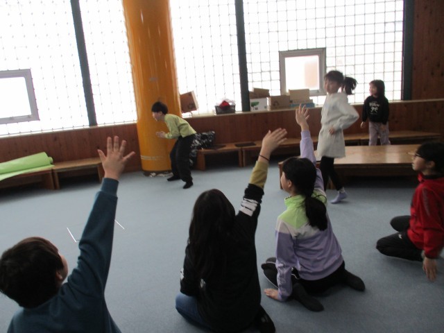 今回は4年生の企画・運営でしたが、ジェスチャーゲームの後半では、2年生がジェスチャークイズを出すなど、2年生にとっても、4年生にとっても楽しい時間になりました。