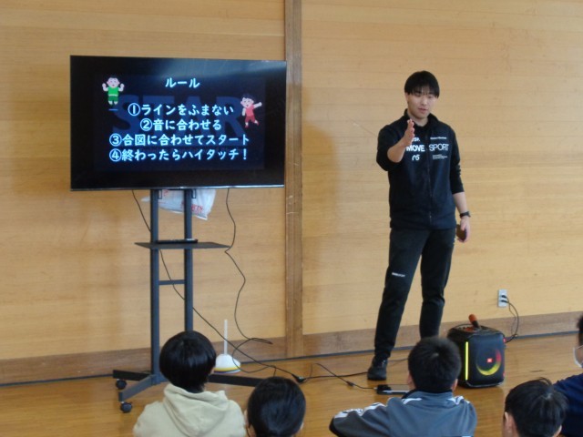 体育館に響くのは、軽快なステップと弾むようなリズム。「リズム運動」の授業では、最初は照れくさそうにしていた子どもたちも、体を動かすうちに自然と笑顔に。