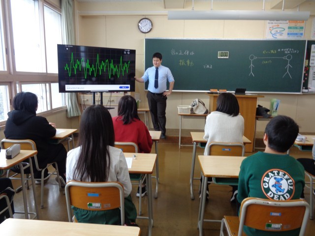 理科の体験授業では、「振動」をテーマにした学習が行われました。