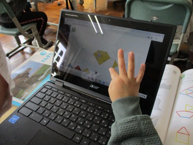 画面でくるくる回転、指で触って移動させるなど、Chromebookのよさを生かして学習が展開されていました。