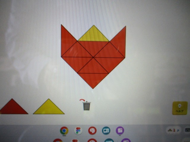 この学習での色板の形は「直角三角形」。(子供たちは「さんかく」と読んでいました)