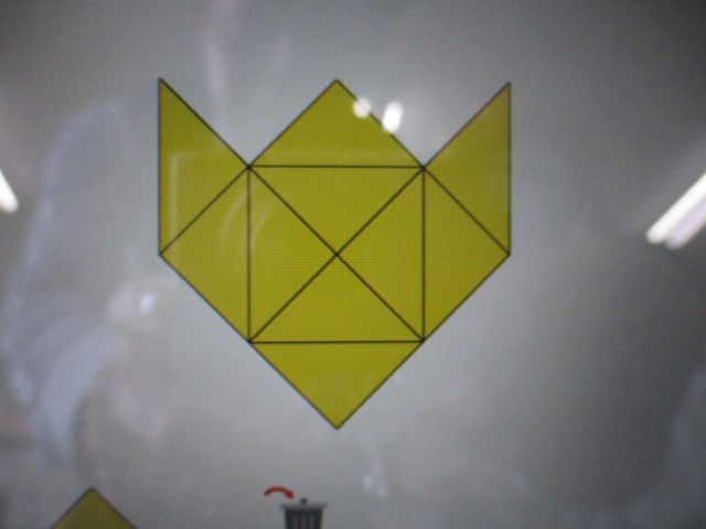 この直角三角形を回転させたり、移動させたりして、ヨットや王冠、ダイヤやロケット、ピラミッドやチューリップなどの形をつくっていきました。