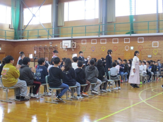 また、在校生(5年生)と卒業生(6年生)で見事なハーモニーを響かせた式歌「旅立ちの日に」。聴く者の心に深く残る素晴らしいものでした。