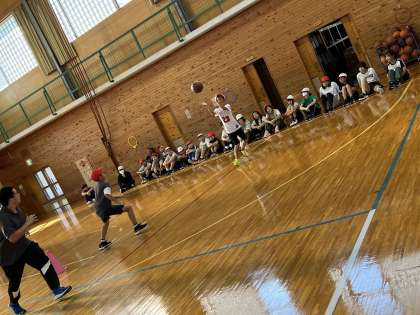 まだまだ暑い午後の体育館。6年生がバスケットボールの授業をしていました。