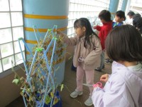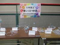 5年生の教室前には、図工「美しく立つ針金」の作品を展示しています。 針金から生...