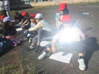 この日の3年生の理科では、日光について学んでいました。 「はね返した日光が当た...